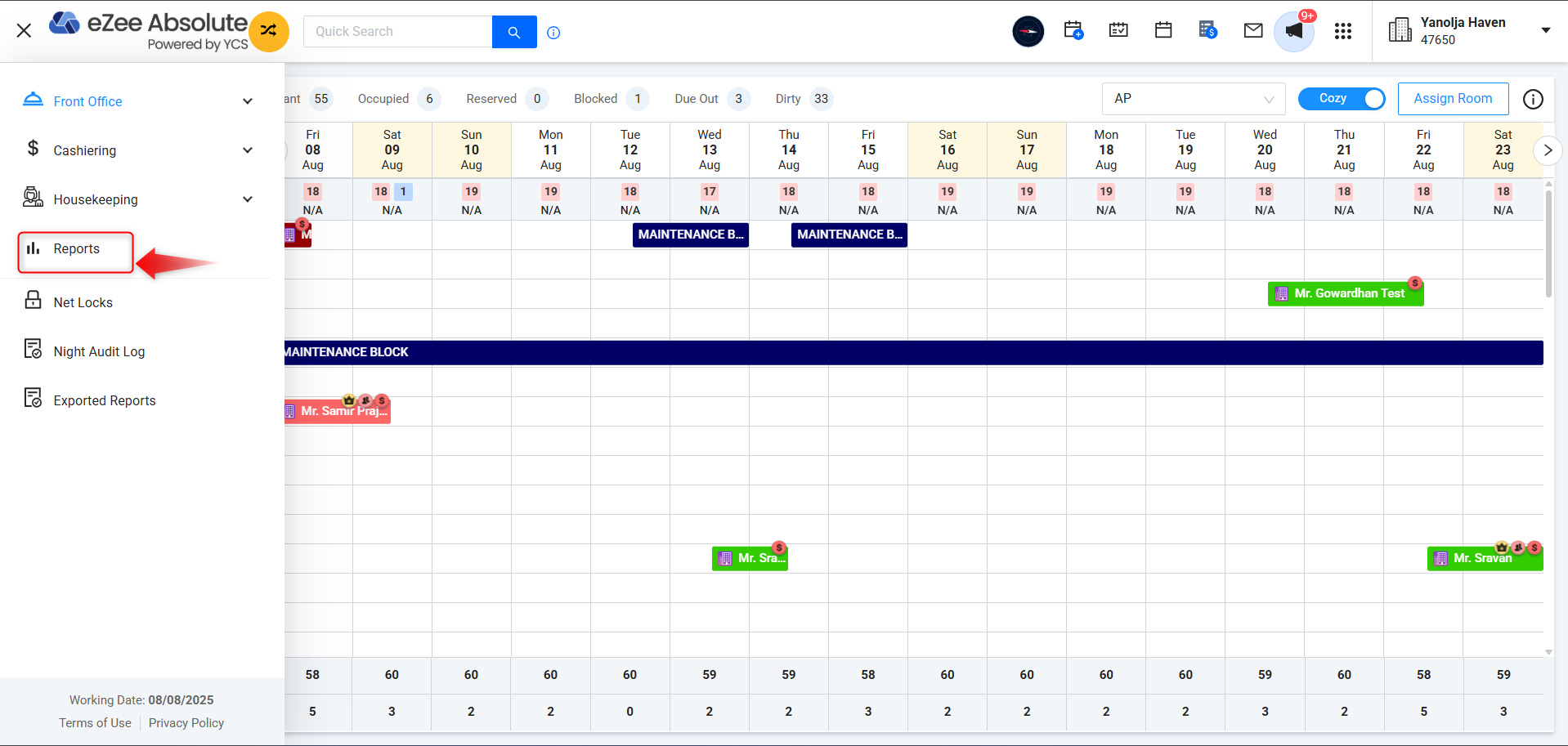 - Login to your eZee Absolute PMS